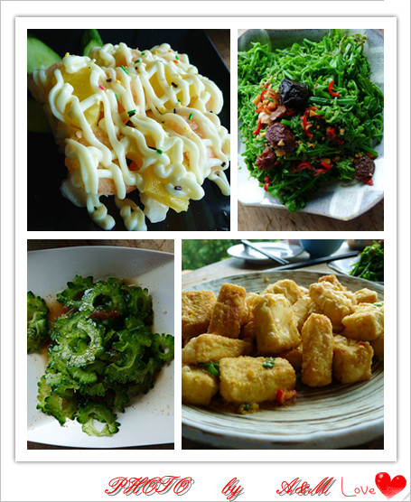 另外,我們又加點了四道菜~鳳梨蝦球,梅子過貓,梅子山苦瓜,金沙豆腐