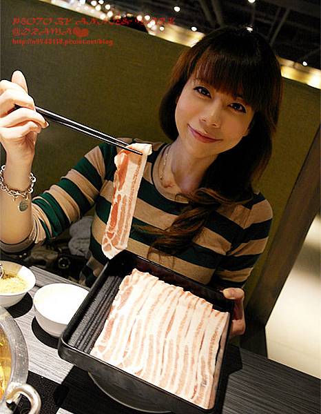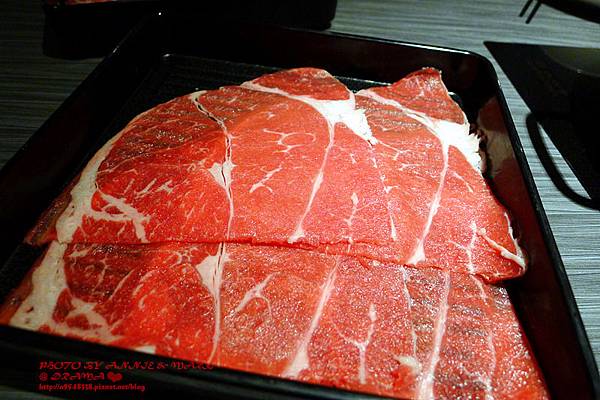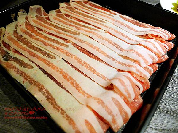 豬肉味道比牛肉氣味淡,比較不會膩口,很涮嘴,會一片接一片吃不停!呵呵