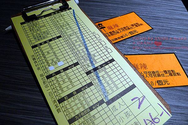 菜單如下,第一次的點菜時,會先上種合菜盤,所以青菜類會先畫掉不用點,