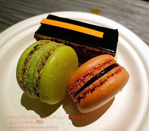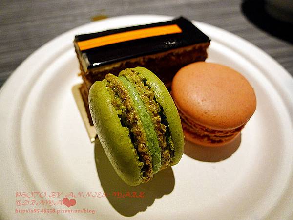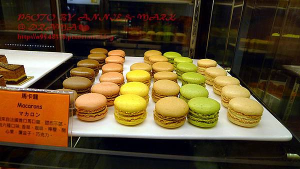 我在甜點櫃前猶豫好久,每種都好想吃,但2張只能選2個,當然是馬卡龍優先嚕!